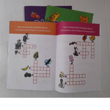 São atividades de escrita, de colorir, de foco e tantos outros, ajudando a fixar o conhecimento, a leitura e a escrita.